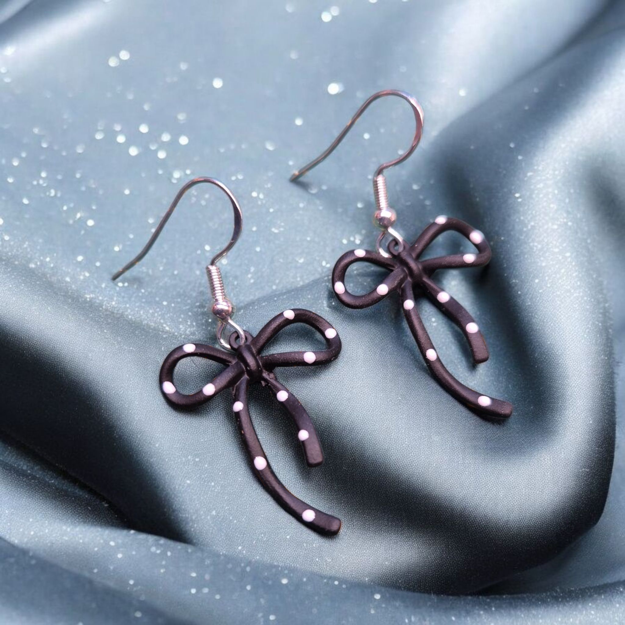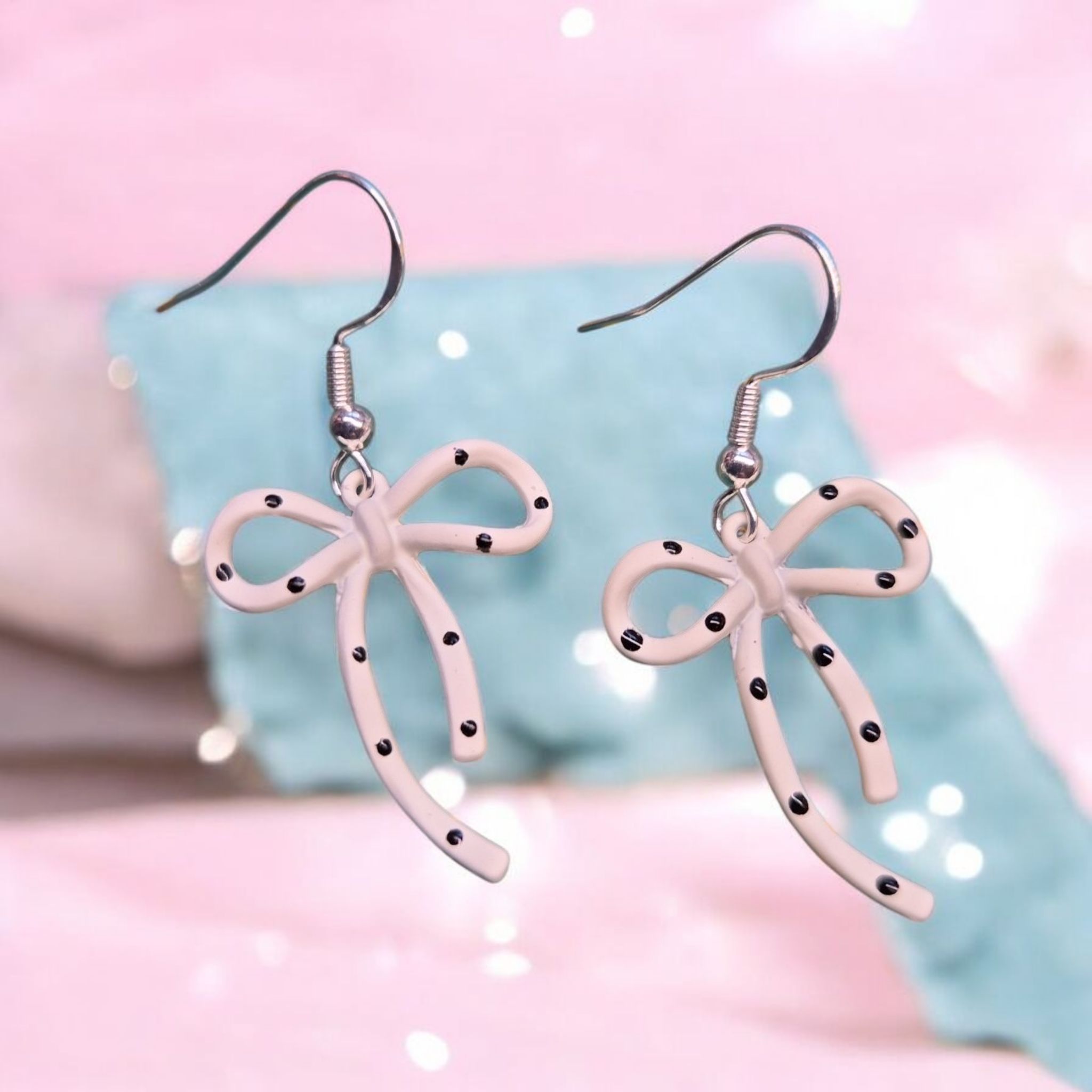 Mooie strikjes met stippen aan sterling zilveren oorhaakjes