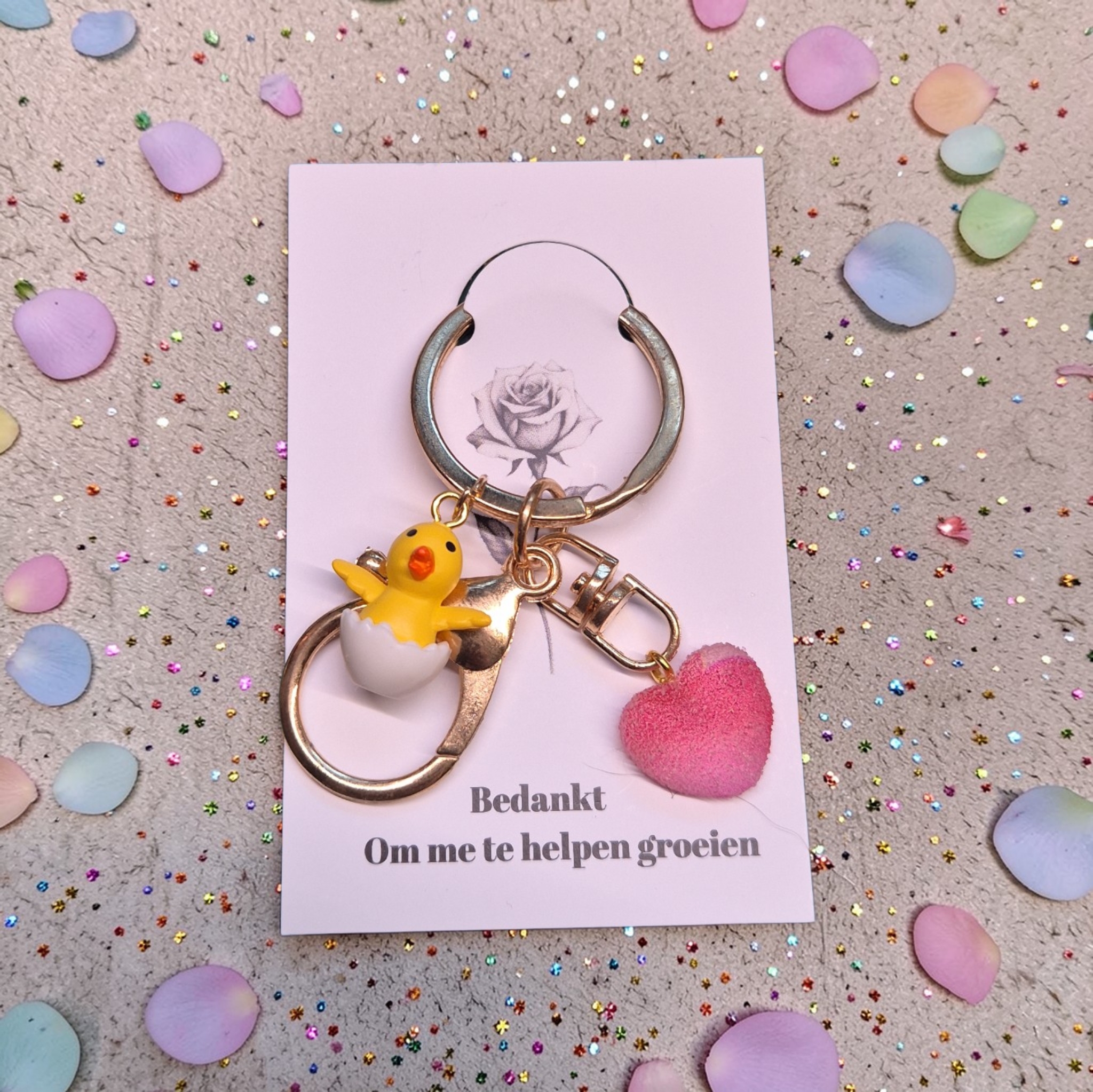 Kaartje met tekstje en sleutelhanger