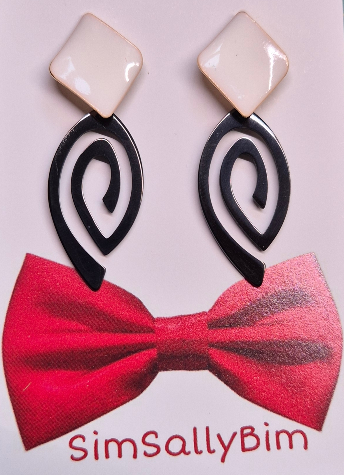Mooie zwarte hangers aan geëmailleerde witte stekertjes lengte : 40mm