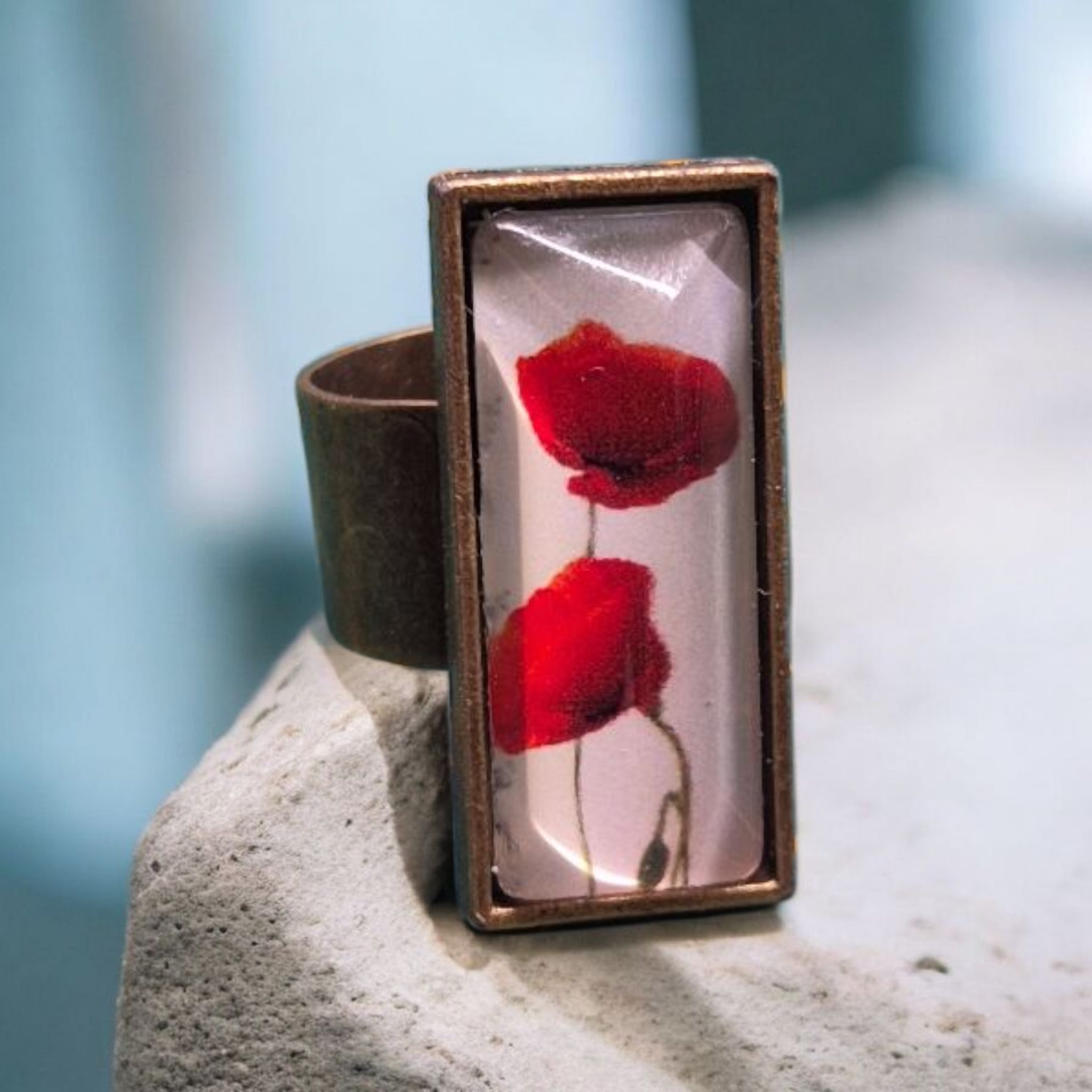 Bronskleurige verstelbare ring met rechthoekige klaproos