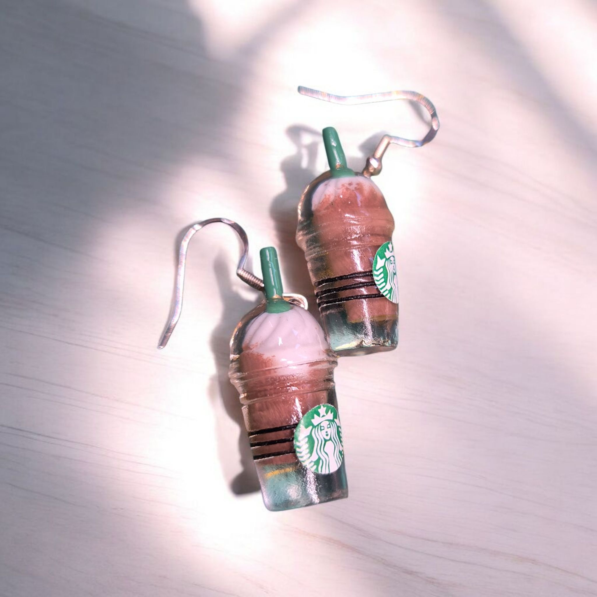 Grappige miniatuur bekers Starbucks aan sterling zilveren oorhaakjes lengte: 43mm