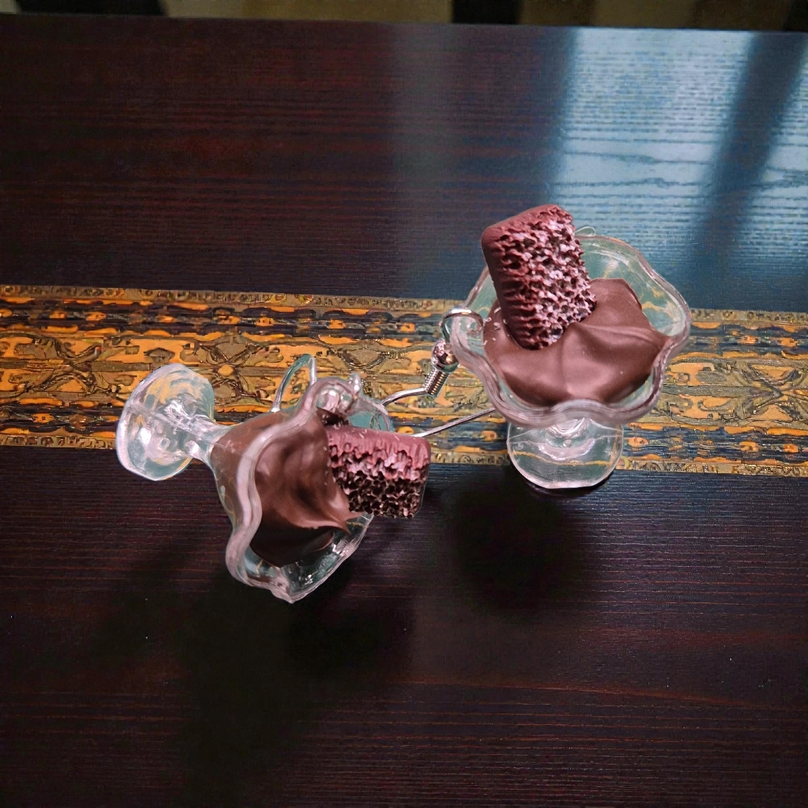 Schattige miniatuur potjes met chocomousse aan sterling zilveren oorhaakjes
