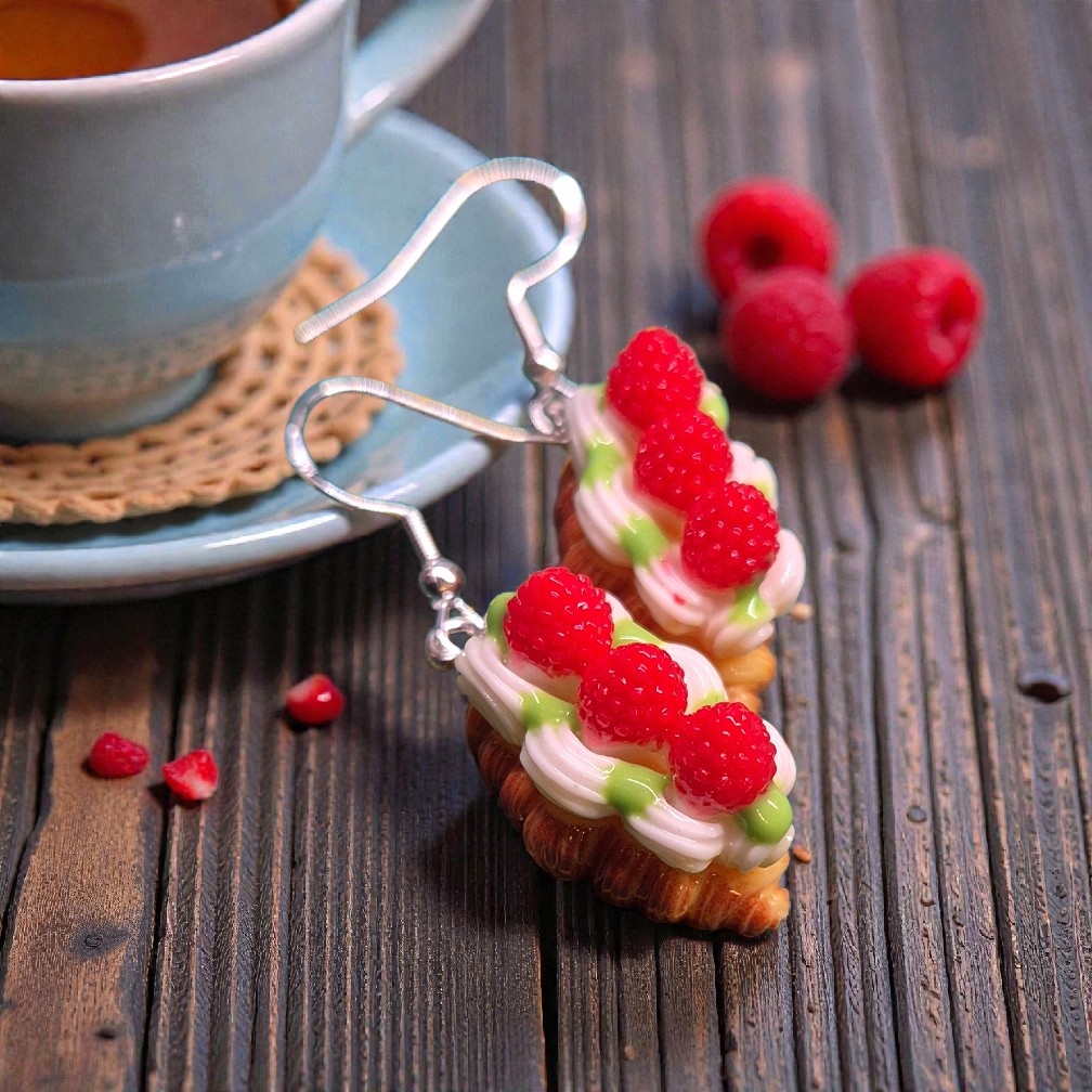 Grappige oorbelletjes met gevulde croissant aan sterling zilveren oorhaakjes