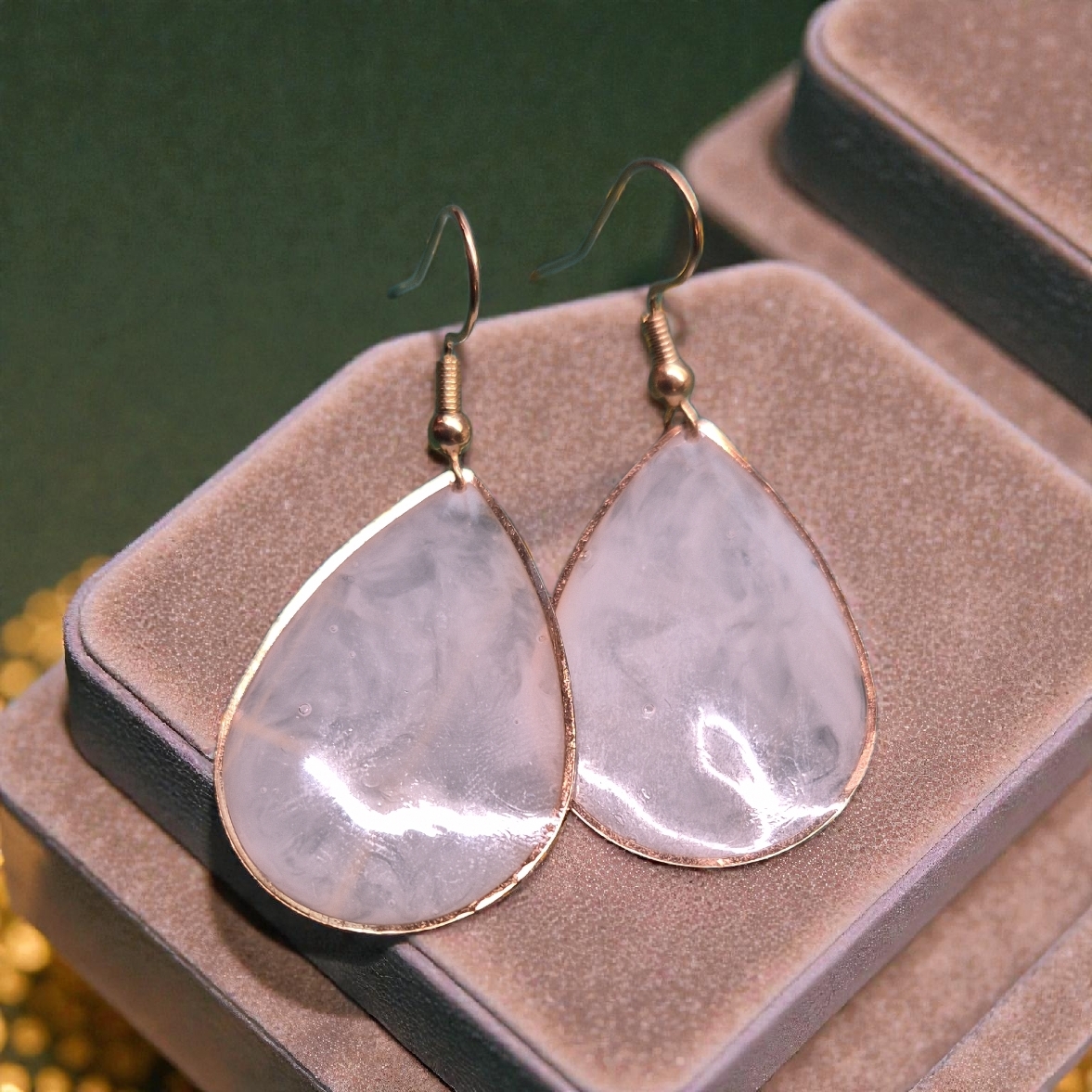 Mooie goudkleurige druppels met epoxy aan 18k vergulde oorhaakjes