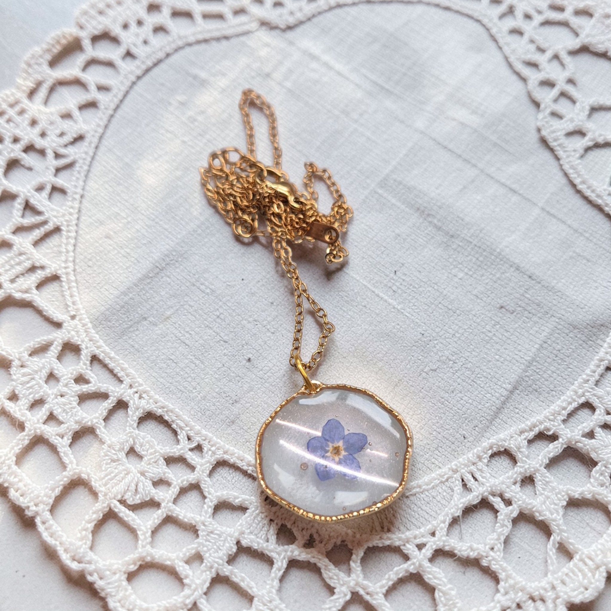 Mooie goudkleurige ketting met Vergeet-mij-nietje