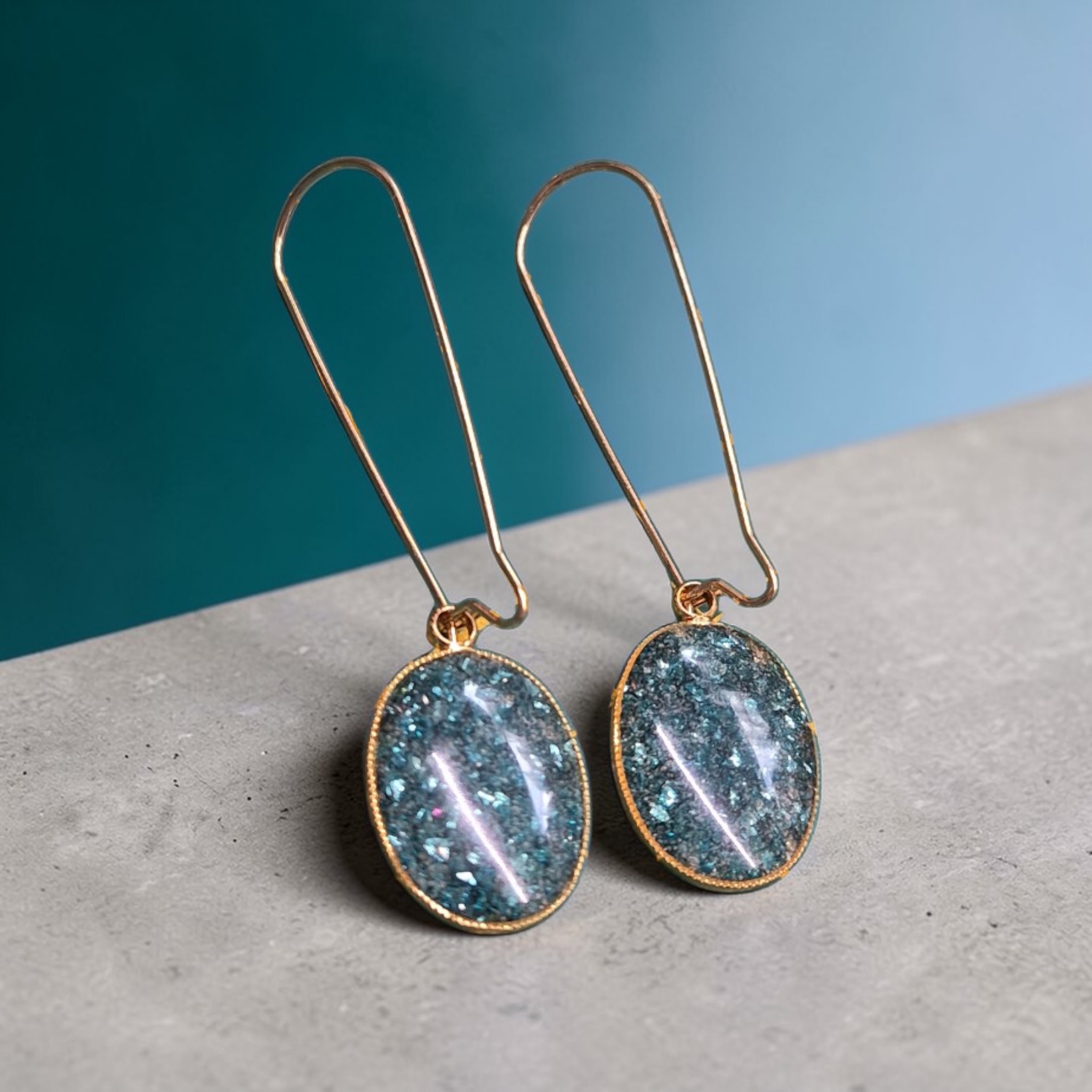 Ovale goudkleurige hangertjes met epoxy