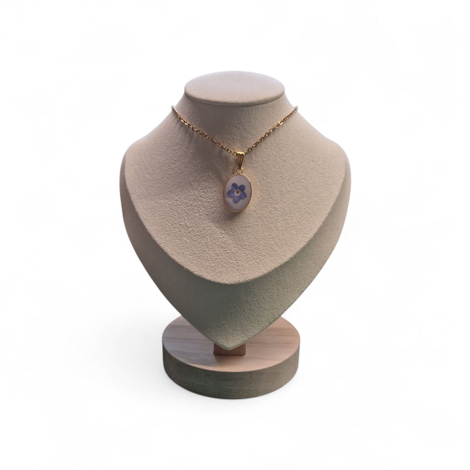 Mooie goudkleurige setting met witte epoxy en Vergeet-mij-nietje