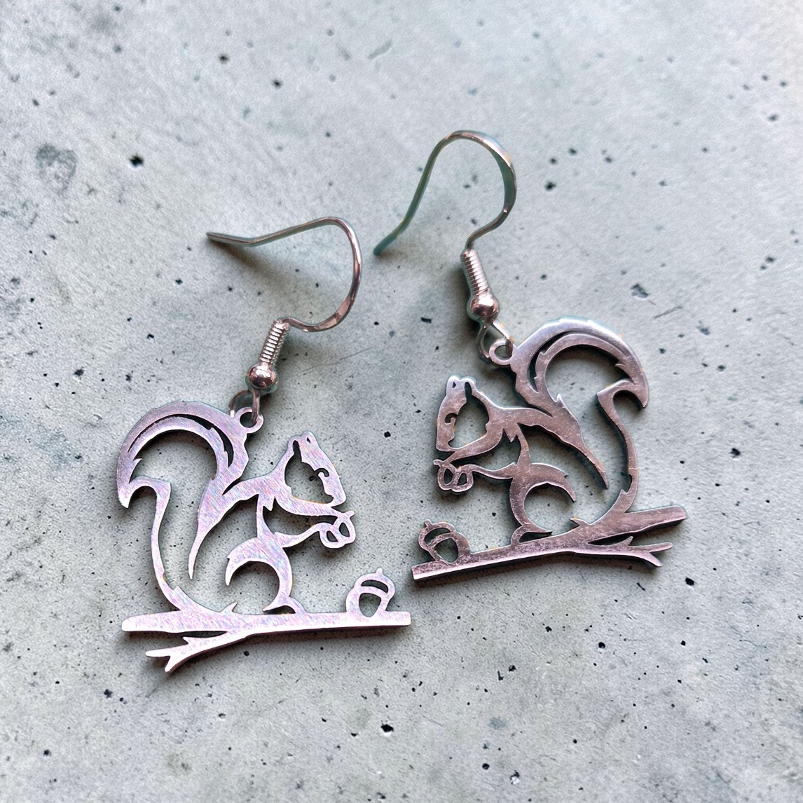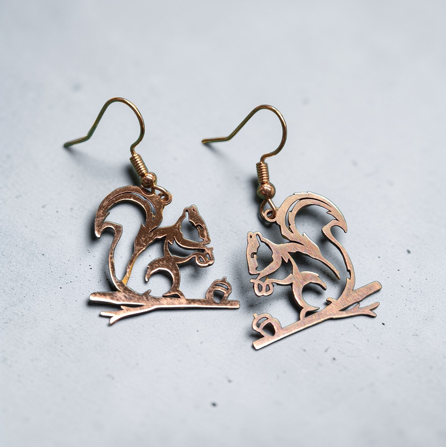 Mooie rvs eekhoorntjes goud of zilverkleurig met sterling zilveren oorhaakjes of 18k vergulde oorhaakjes