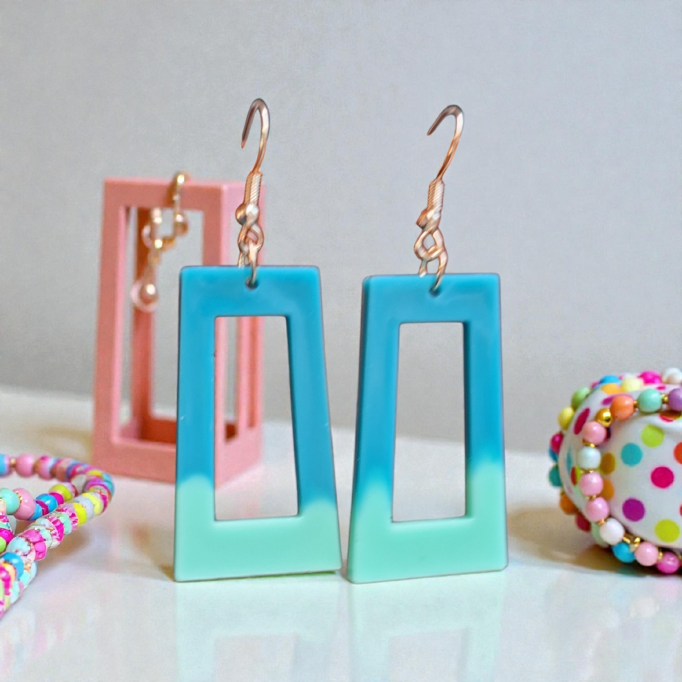 Mooie epoxy hangertjes aan 18k vergulde oorhaakjes zeer licht aan de oren