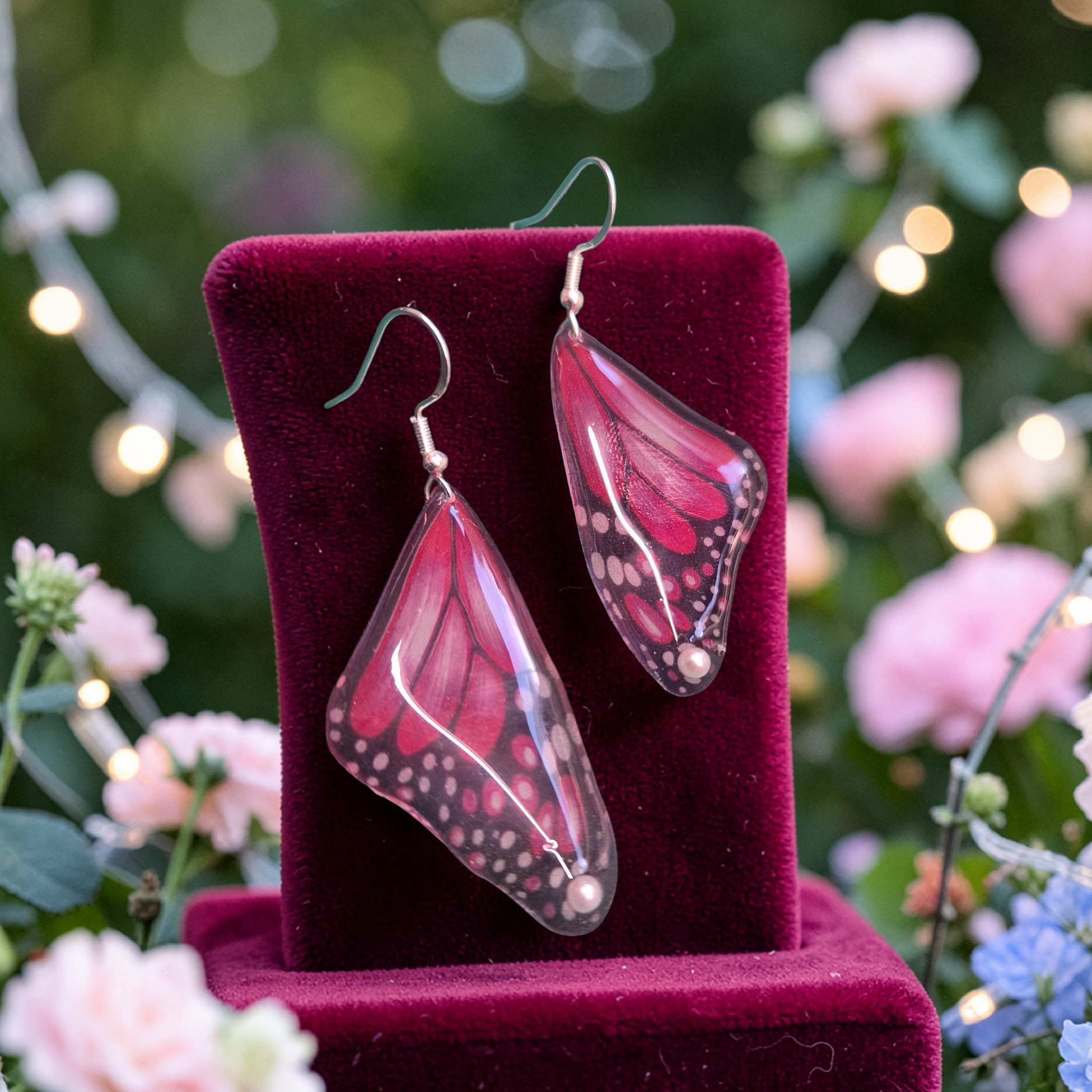 Handgemaakte vlindervleugels aan sterling zilveren oorhaakjes