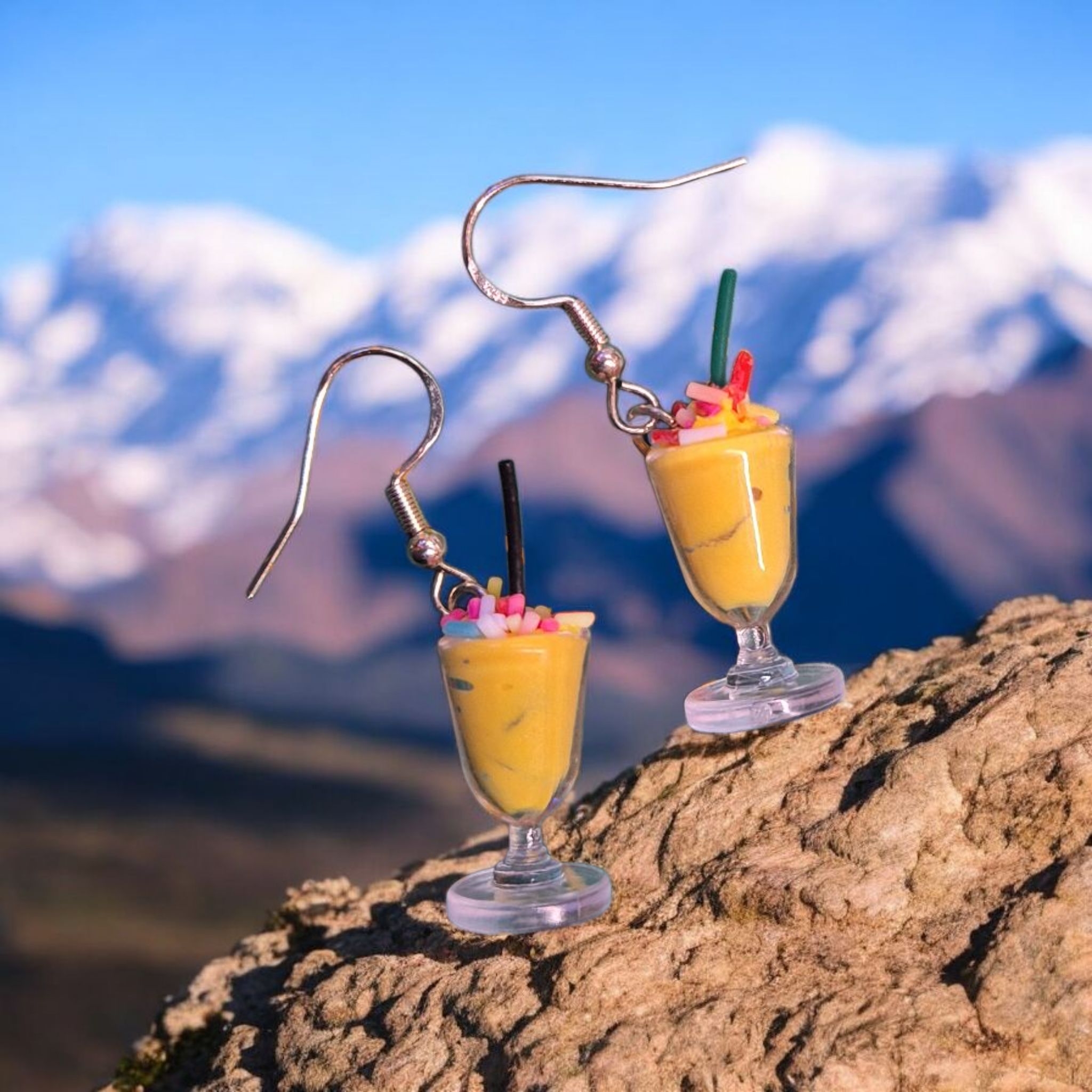 Leuke resin bekers met gele vulling en sprinkles aan sterling zilveren oorhaakjes
