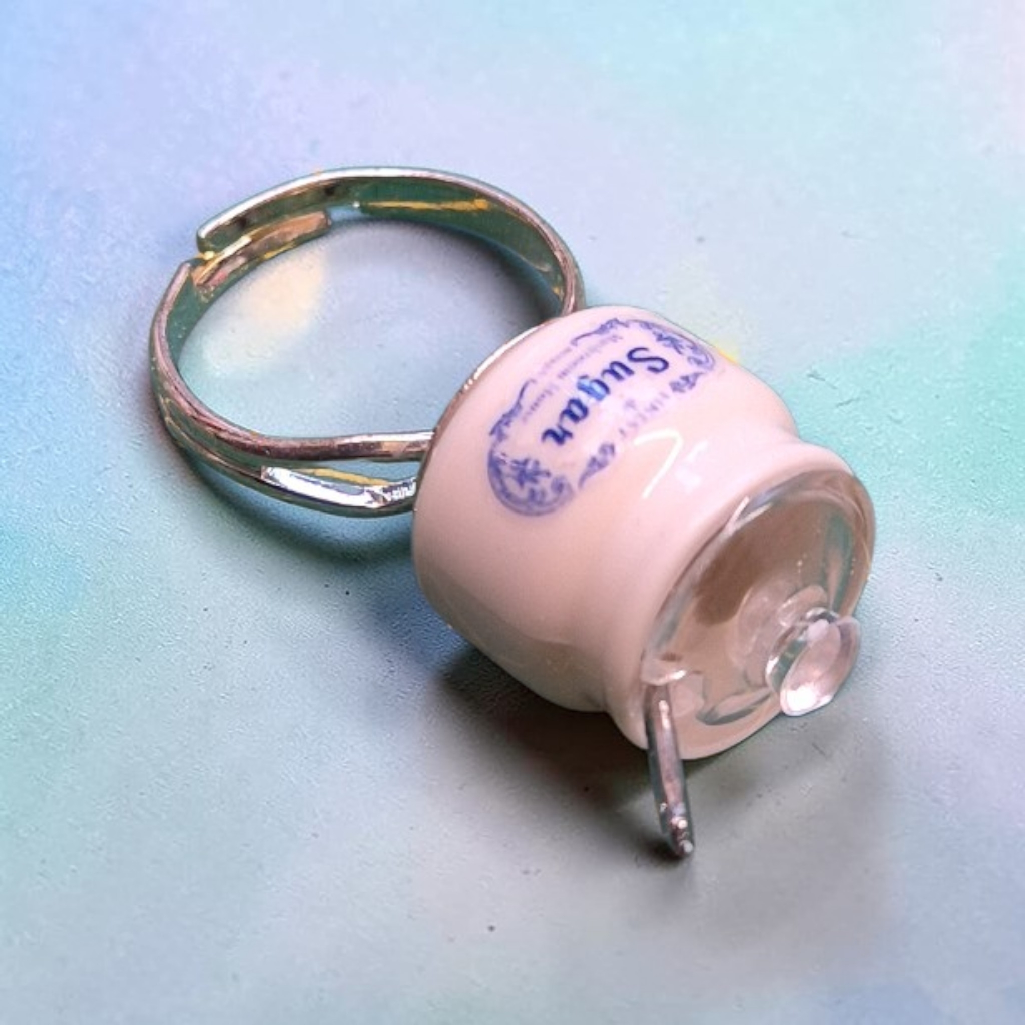 Miniatuur potje suiker op verstelbare ring